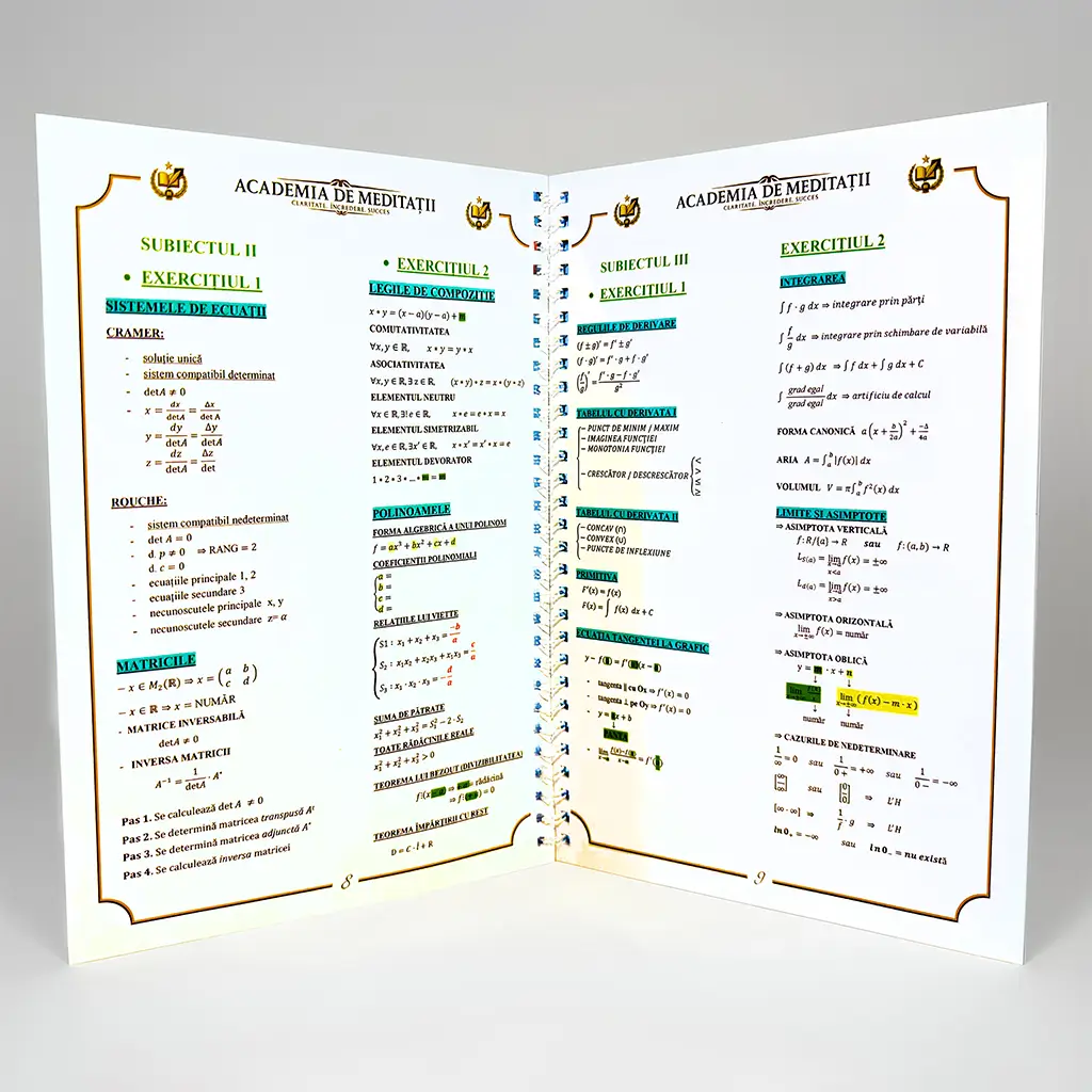 E prima dată când simt că BAC-ul are o logică. Exercițiile sunt pe șabloane generale și pentru fiecare am o pagină cu formule dedicate. Nu mai învăț la întâmplare. Știu ce se aplică și când.